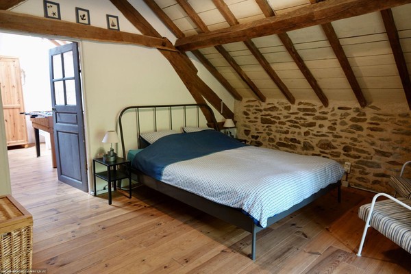 Le Murmure is a holiday home in Chez Porte, a hamlet of 7 houses, located 4 km from the village of Pionsat in the Puy-de-Dome. The house is located right next to an acient water spring. “Le Murmure” is the French word for ‘murmuring, whispering’ and refers to the flowing water of the spring. The house is a renovated former stable, where an attempt has been made to preserve the rural French atmosphere as much as possible. The living room-dining kitchen is spacious and atmospheric, equipped with a new pellet stove and a cozy sitting area with Dutch satellite TV and WiFi. The sofa can also serve as a double bed. There is also a well-stocked library and all kinds of board games. The dining kitchen has a refrigerator with freezer compartment, combination microwave, four-burner gas hob, the latest Senseo machine (pads/ground coffee) and toaster. There is a well-stocked crockery cupboard and sufficient storage space for your own belongings. The bathroom has a spacious shower, sink, toilet and sufficient storage space. On the first floor there are two large, communicating bedrooms. The first bedroom has a double bed (160 x 200) with a view of the original beams. In the second bedroom there are two single beds, separated by a storage unit filled with all kinds of games. There is also a table football game here that can also be converted into 20 other games and there is a sofa to “chill”.